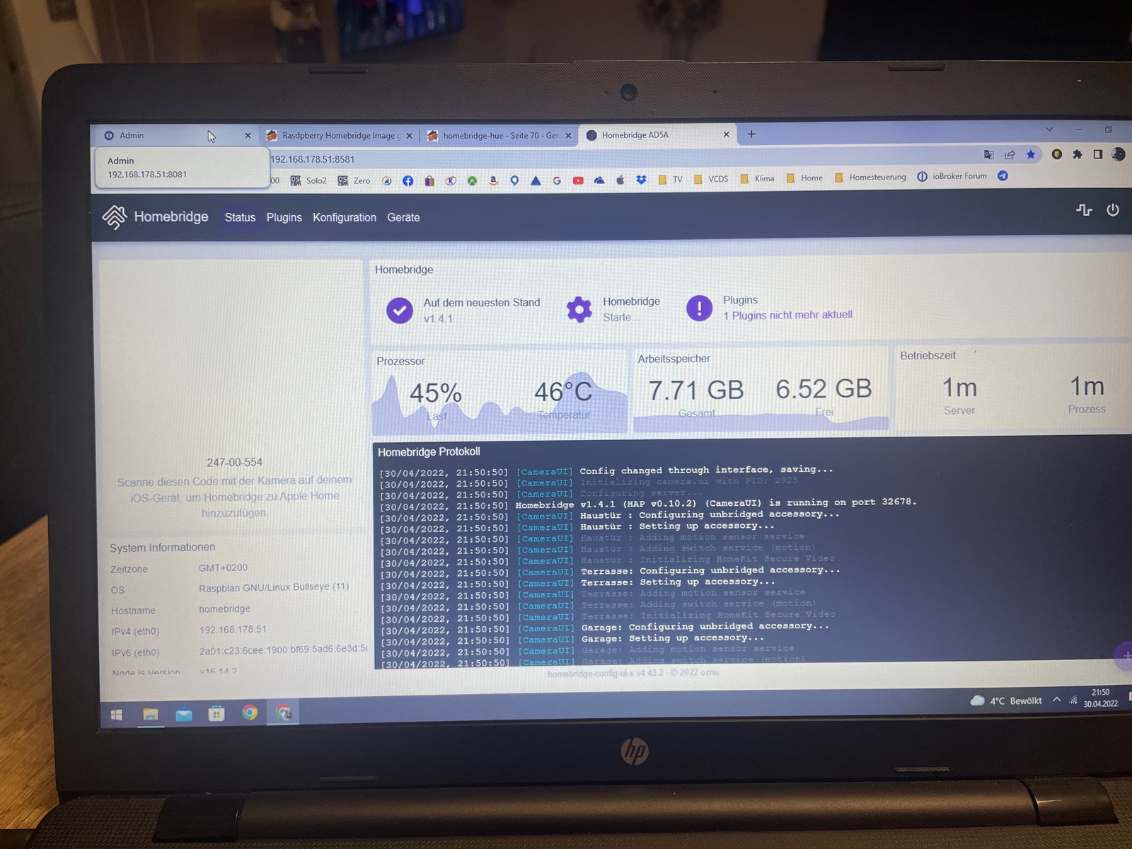 nachdem ich heute einen komplett Ausfall mit meinem Raspberry hatte, habe ich das ganze System neu aufgesetzt. Auf dem iPhone habe ich die Home App gelöscht und auch soweit wie möglich die Bridges entfernt. Leider kann ich trotzdem keine Homebridge hinzufügen, da sie laut der Anzeige bereits hinzugefügt wurde. Ich komme also leider nicht weiter. Könnte mir vielleicht jemand einen Rat geben?