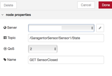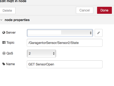 Jetzt habe ich nur das Problem, das ich eine Doppelgarage habe und dementsprechend Garagentor1 und Garagentor2 als Namen vergeben habe. Bei Node Red habe ich einen 2 Flow gemacht. Aber jedesmal wenn ich mit Homebridge ein Tor schliesse oder öffne, schalten beide.