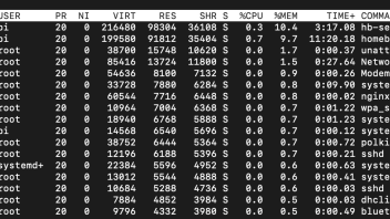 Noch besser geht das mit dem Befehl top. der zeigt ebenfalls die Prozessliste an, aber nicht einfach nur den augenblicklichen Zustand wie ps aux, sondern live und kontinuierlich. Wenn top läuft, dann kann man die Ausgabe nach memory sortieren, in dem man M eingibt (also ein großgeschriebenes M; shift-m). Die Taste q beendet top.