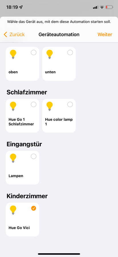 Jetzt zu meinen BeweggrĂŒnden. Ja, das ausschalten der Lampe hĂ€tte auch ein normaler Timer hinbekommen. Ich wollte es aber gerade auch fĂŒr mein zweites Problem ĂŒber eine wenn-dann-Funktion lösen. Also, mittags bleibt die Lampe im nachtlichtmodus an und um 15 Uhr dreht die voll auf, sodass die kleine weis, dass sie aufstehen kann. Hier hĂ€tte der Timer nicht funktioniert, da die Funktion um 15:00 Uhr nur dann starten soll, wenn die Lampe tatsĂ€chlich auch an ist. Ansonsten soll sie natĂŒrlich aus bleiben.
