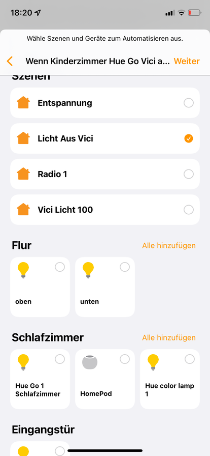 Zuerst, ich habe mein Problem ĂŒber die eve-App gelöst. Da kann man ganz einfach den wenn-dann Algorithmus einstellen.