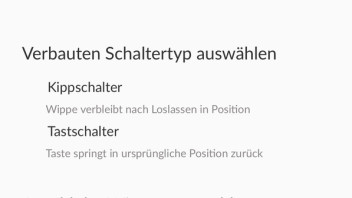 Du musst zwischen "Kippschalter" und "Tastschalter" sowie "eine Wippe" und "zwei Wippen" wählen können. Dazu fehlen dir aber die Auswahlboxen, vermute daher, dass beim Anlernen was schief lief und nicht alle Infos ankamen. Oder lassen die sich auch so auswählen?