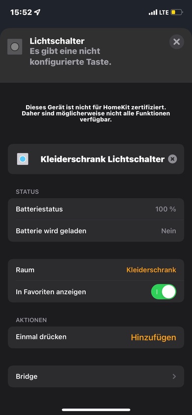 Neues problem, jetzt werden mir die einzelnen Funktionen des Wallswitch und des Hue Dimmers nach Homekit durchgereicht mit der info „wird nicht unterstützt“.
