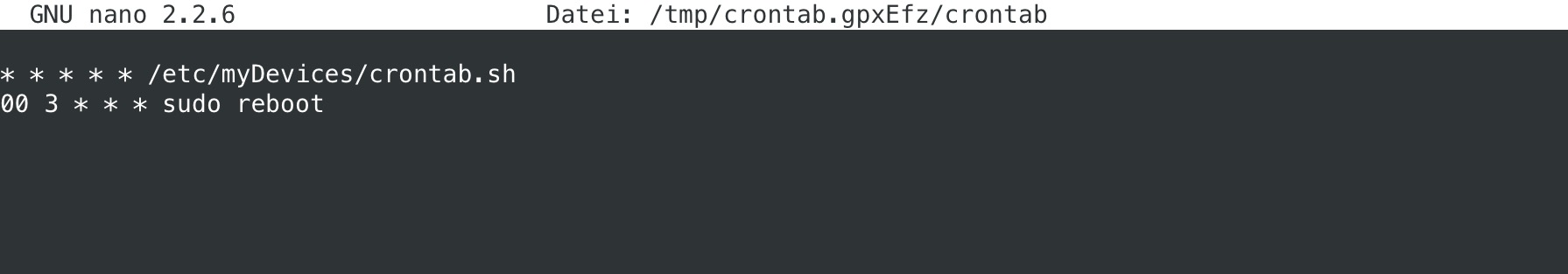 Fertig, ab jetzt sollte der Pi jeden Tag um 3 Uhr Nachts seinen Reboot ausführen ![]()