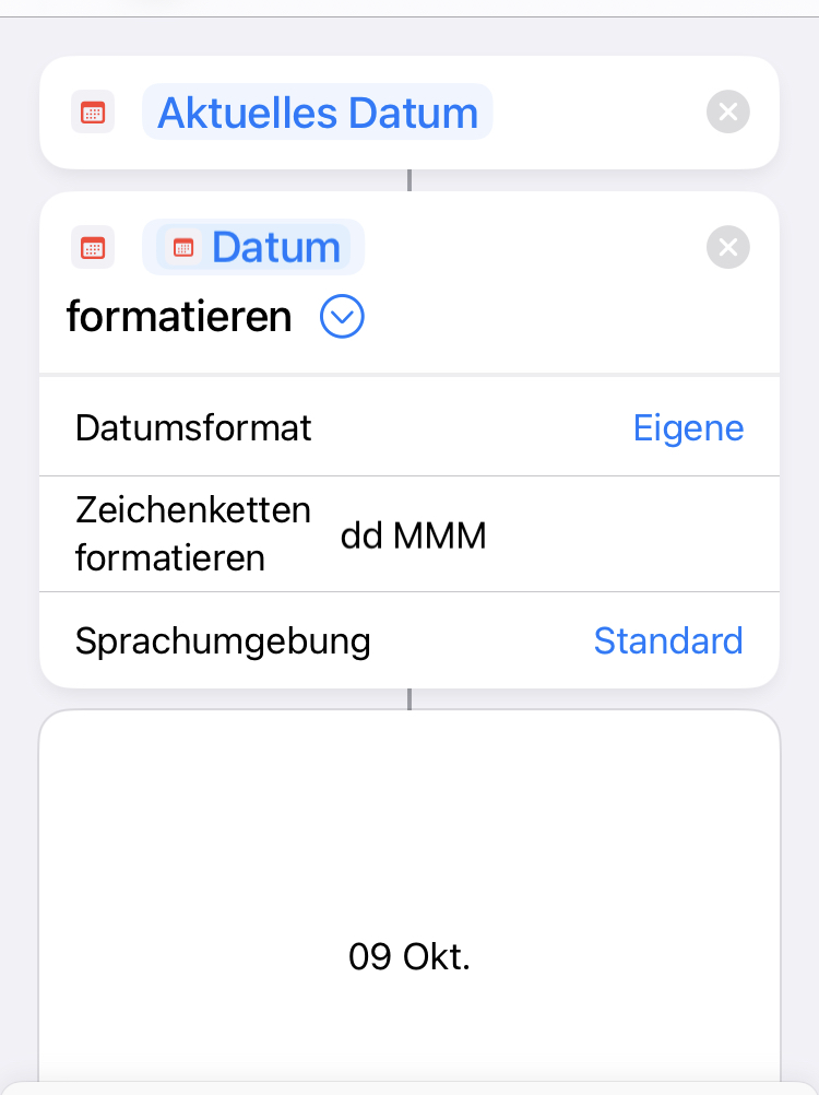 Im Anschluss kannst denke ich dann mit der Wenn Aktion fortfahren. Vielleicht braucht es den Tag auch gar nicht, sondern nur den Monat und diesen evtl. als Zahl ausgeben lassen.