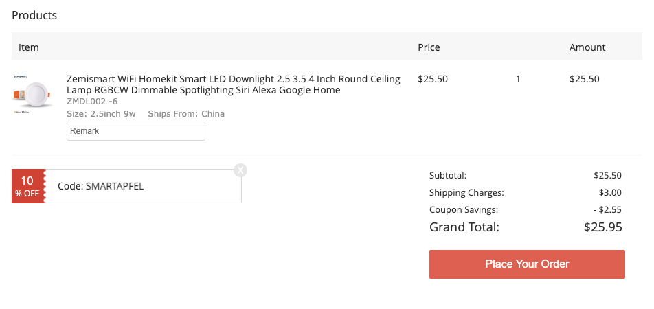 Das neue Zemismart HomeKit Wi-Fi Downlight erhältst Du direkt im Zemismart Online-Shop ab etwa 26,- EUR. Mit unserem Community-Rabattcode »SMARTAPFEL« gibt es zusätzlich einen Rabatt von 10 % für Dich.