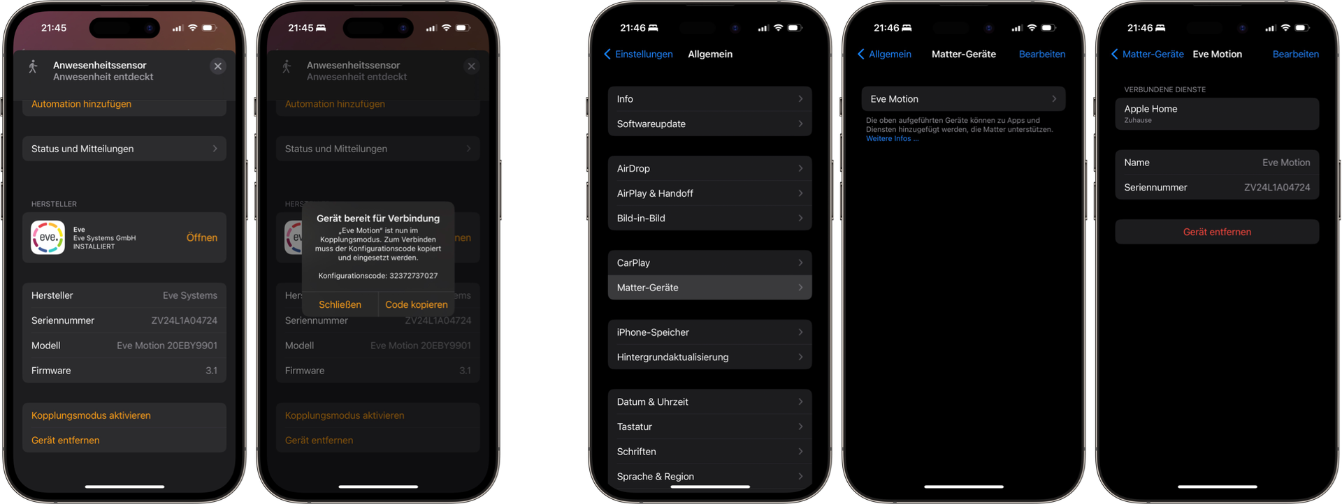 Und in der Home App gibt es dann auch die Möglichkeit, das Gerät in den Kopplungsmodus zu versetzen, um es mit anderen Plattformen zu verbinden.