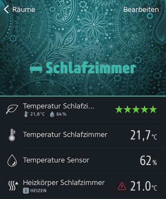 3 Zimmer mit EVE Thermo / Room und Fenster und Türkontakt ausgestattet.