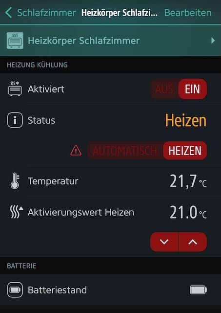 Übrigens im Bereich Status kann man nicht umschalten zwischen Automatisch und heizen drückt man auf automatisch springt es wieder auf heizen.