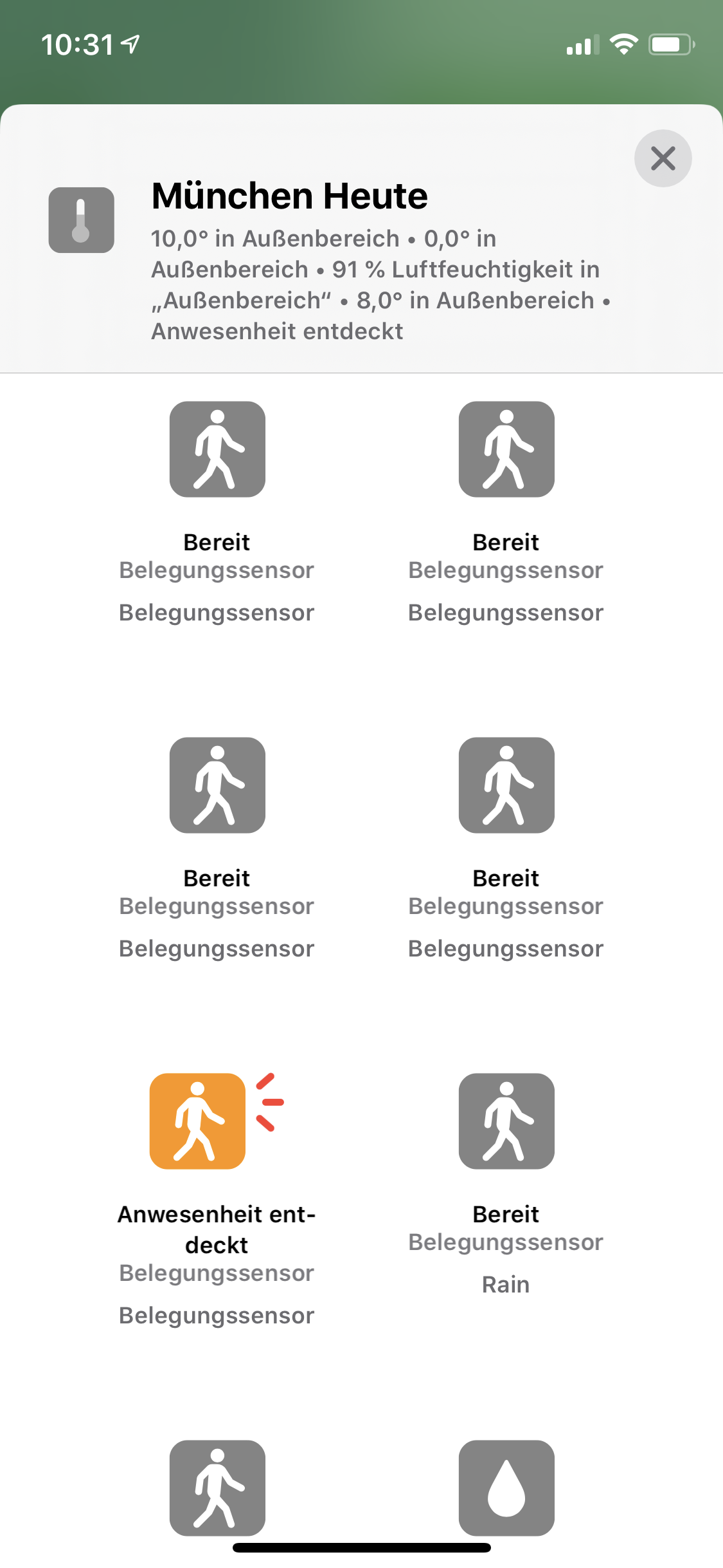 Die Belegungssensoren sind ein Workaround für nicht unterstütze Sensoren in der Apple Home App. Im Sensornamen steckt dann der Wert (siehe mein Screenshot). Außerdem togglen die Sensoren bei Wind > 4m/s, Wolkendecke > 10% usw.