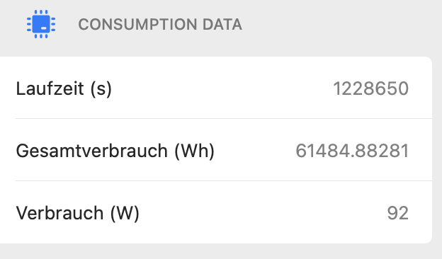 Seit dem Update auf iOS 16.2 und / oder dem Architektur Upgrade wird der Stromverbrauch meiner Koogeek Steckdosenleiste nicht mehr wie gewohnt angezeigt. Stattdessen steht dort der Wert “Running Time“. Nutzlose Angabe meine ich. Vorher stand da der Watt Wert in Groß.