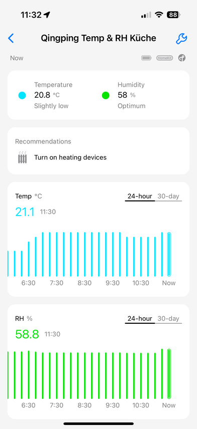 Allerdings ist das für Nutzer, die es seit Langem gewohnt sind, die Historie der Messwerte und das Diagramm anzugucken (z. B. wie war die letzte Nacht, Frostgefahr...) fehlen bei anderen als Eve Produkten diese Anzeigemöglichkeit der Historie.