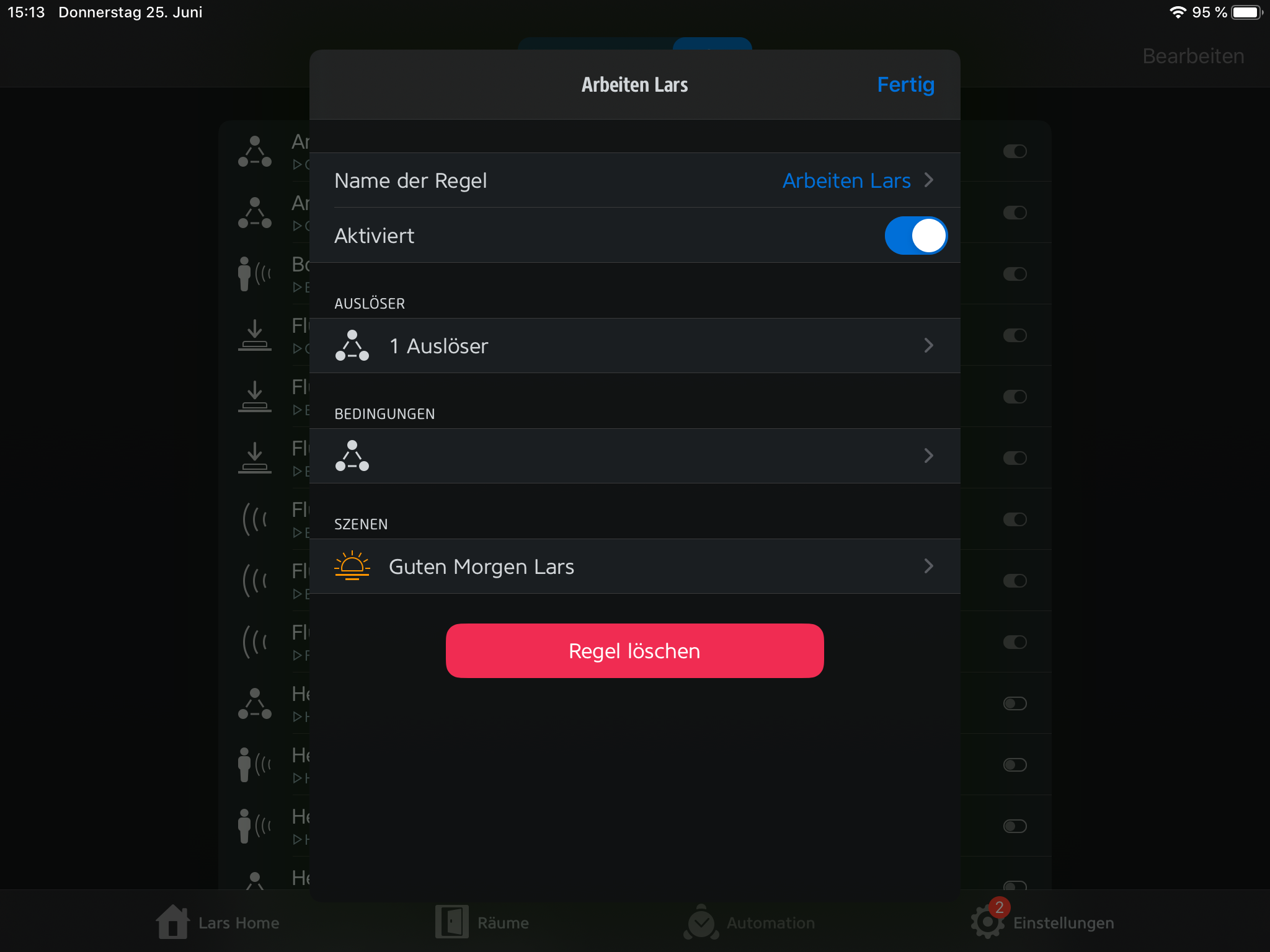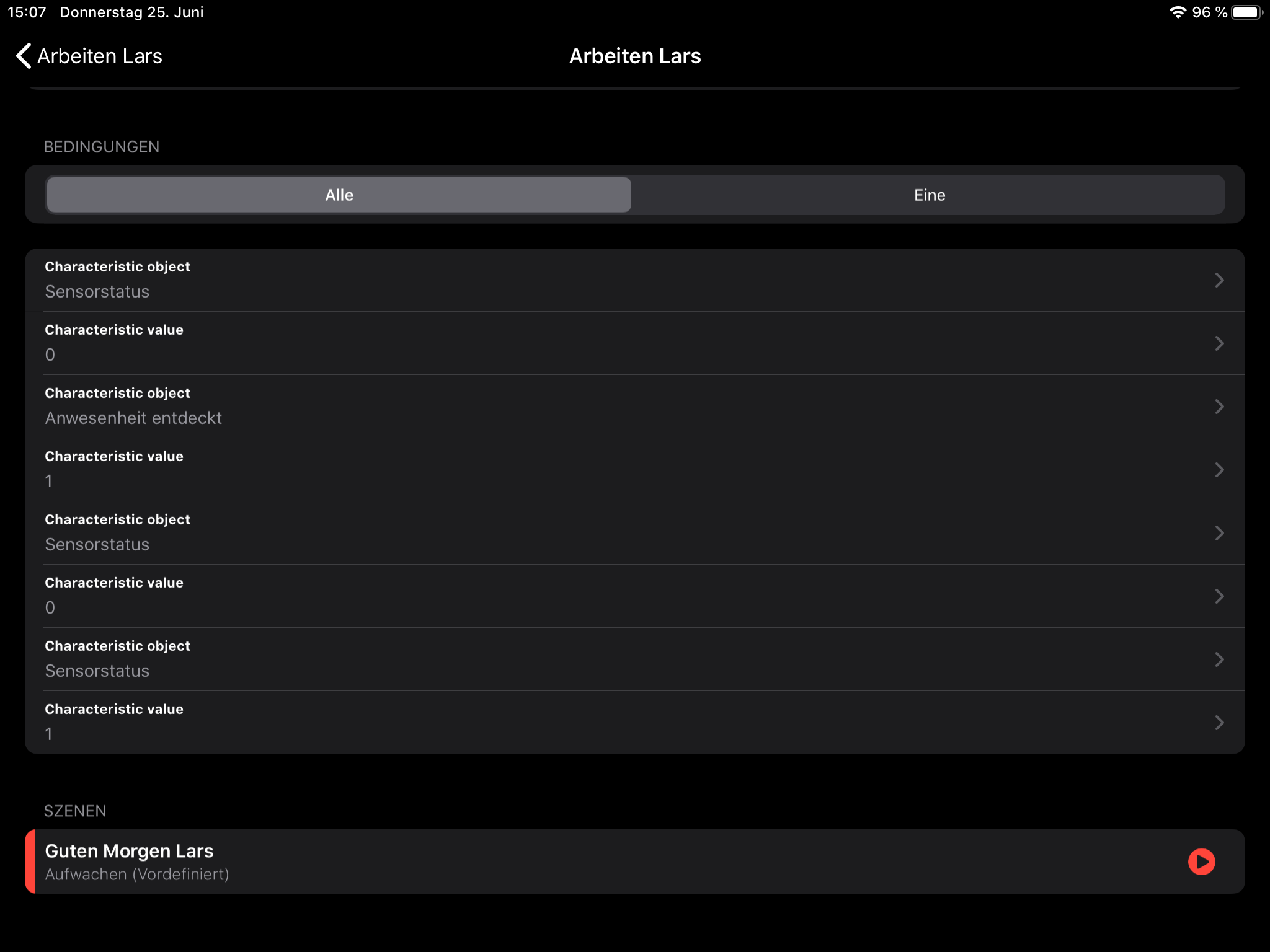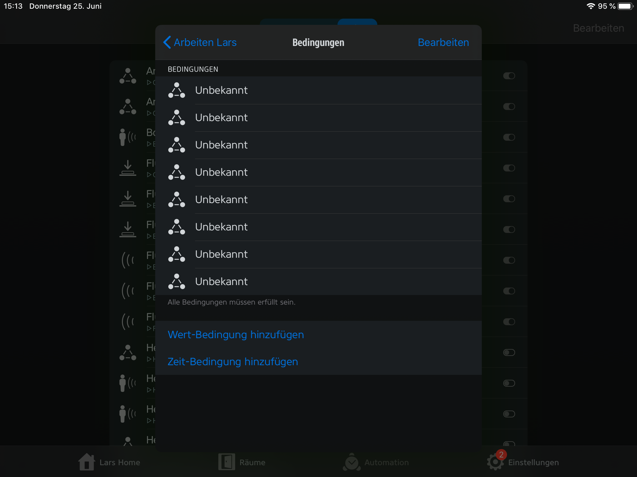 Sie wird soweit korrekt ausgeführt, jedoch erscheinen die Bedingungen in der Automation nicht so wie sie eigentlich aussehen sollten.