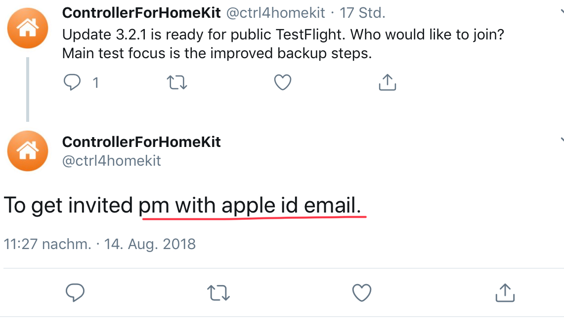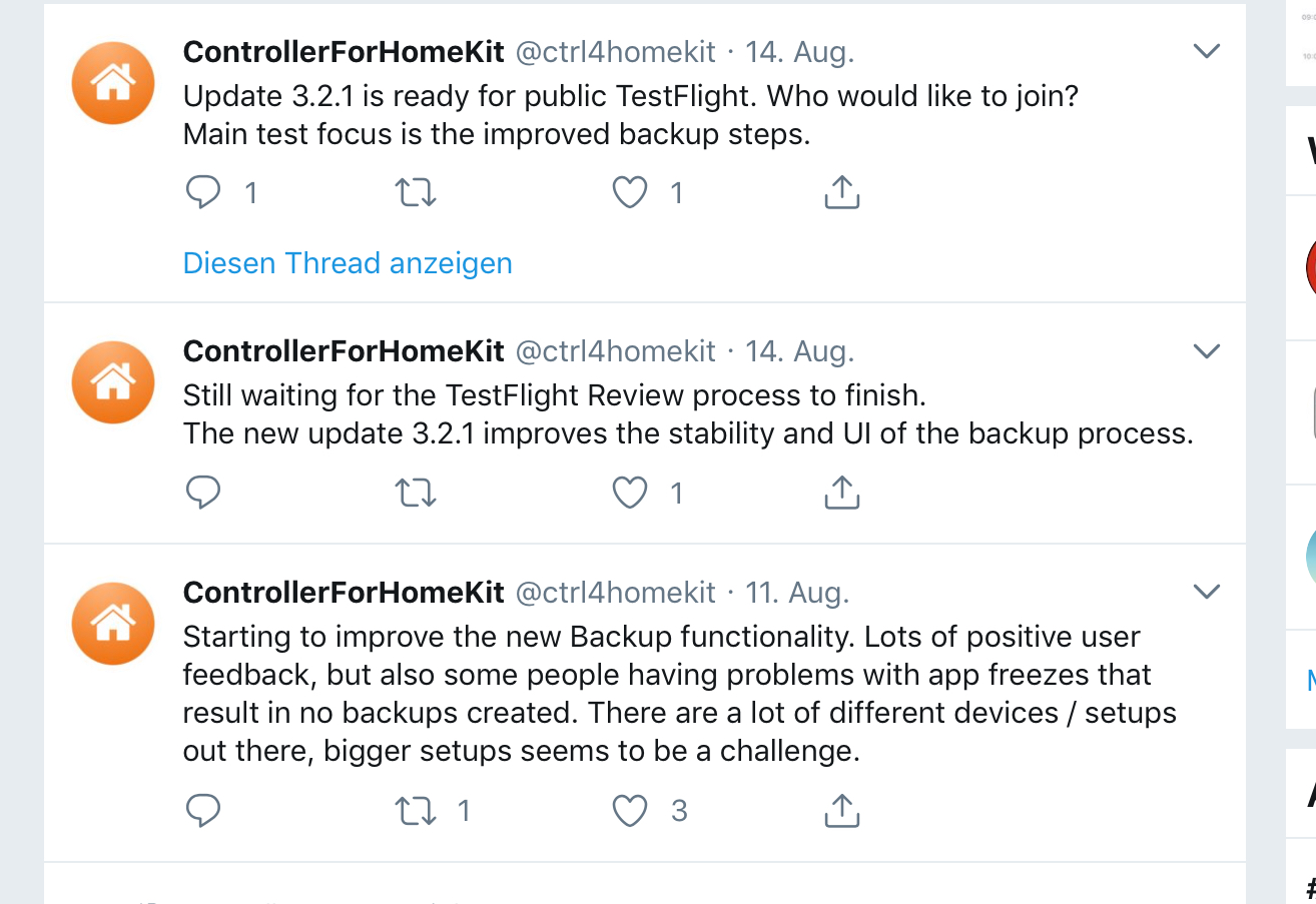 • Seit gestern Abend steht im TestFlight ein Update der App zur Verfügung. Dann muss wohl mal getestet werden ob die Backup Funktion nun besser lauft.