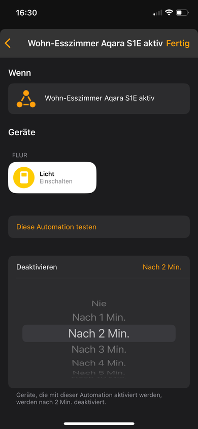 Nun möchte ich gerne den Lichtschalter in der Form steuern, dass wenn ich ihn einschalte, er sich nach 2 Minuten automatisch wieder ausschaltet.