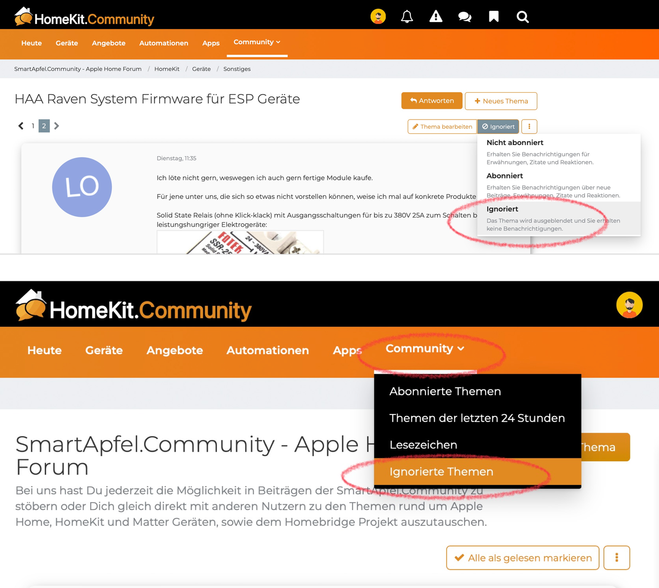 Über „Community ⇾ Ignorierte Themen“ kannst du Themen im Bedarfsfall selbstverständlich auch wieder einblenden.