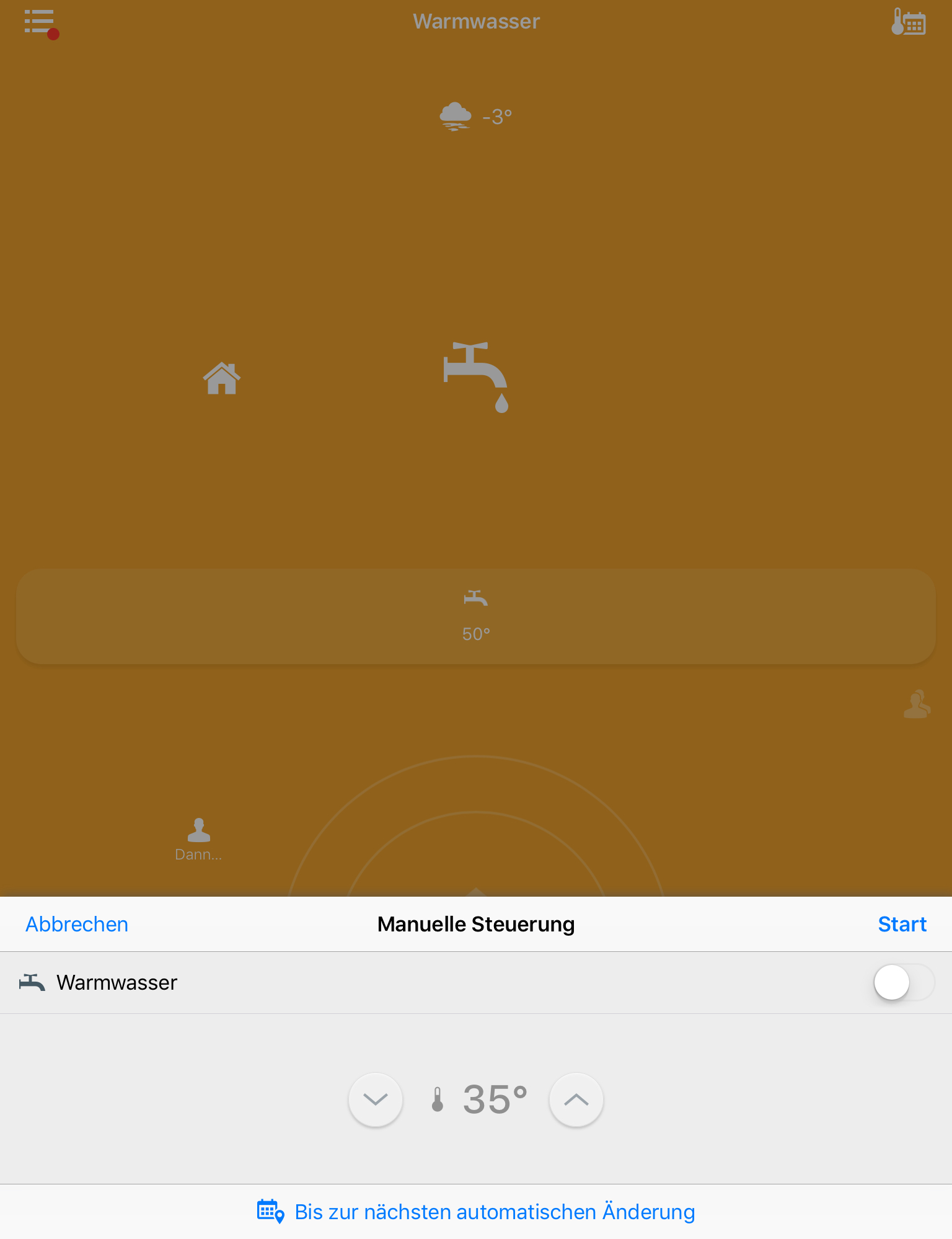 Bei "Automatik" wird die manuelle Steuerung ausgeschaltet und die Thermostate laufen nach dem nativen Plan weiter