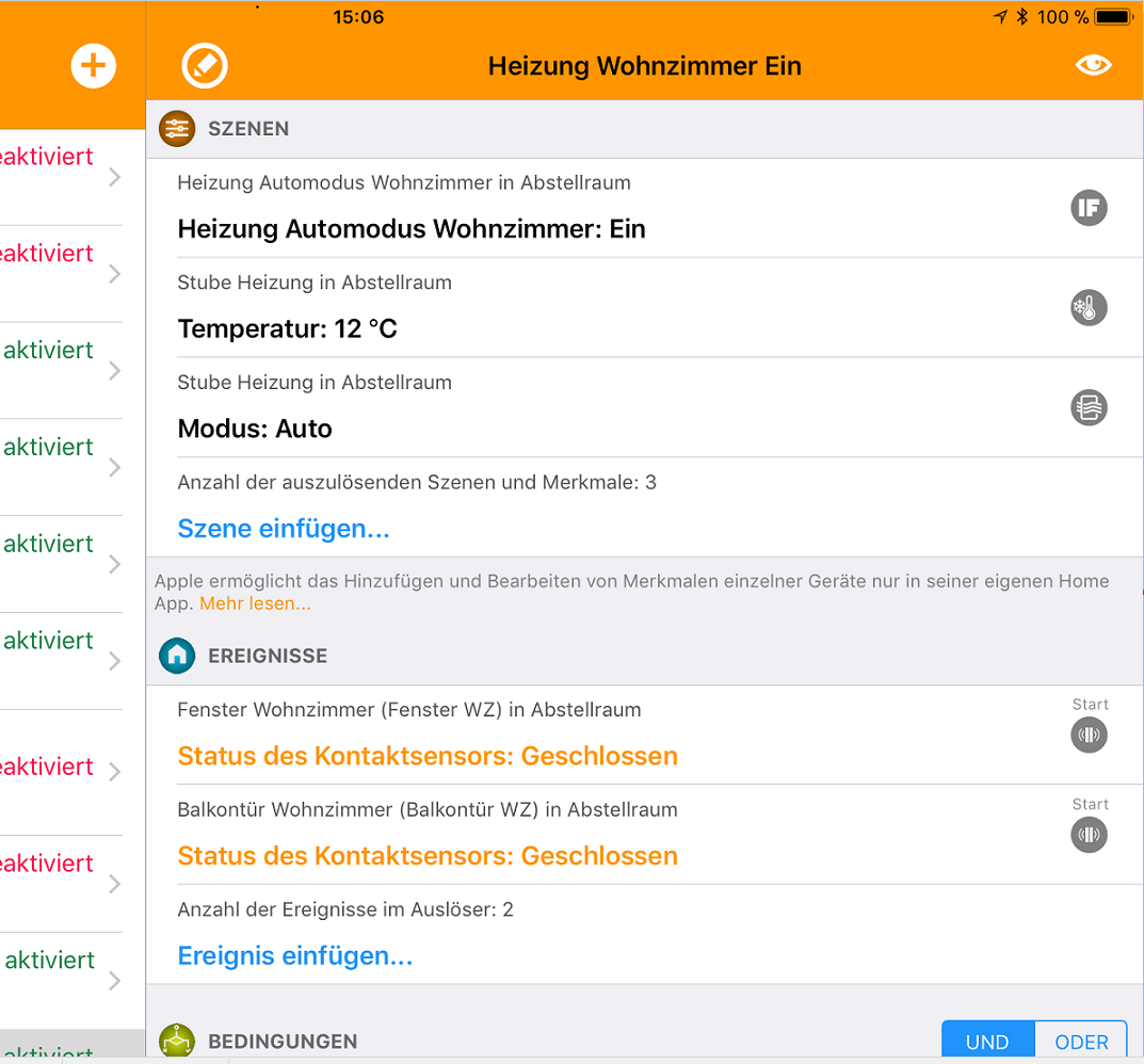 Nativ bietet ja Tado bei den Thermostat nur die Regelung der Heiztemperatur und An/Ausschalten.
