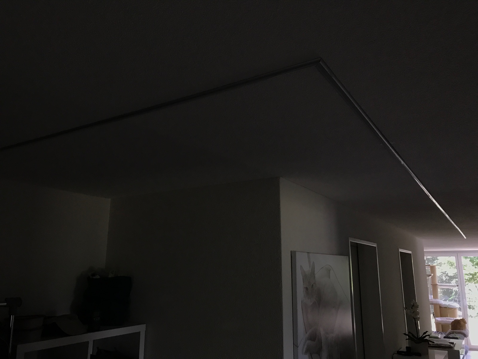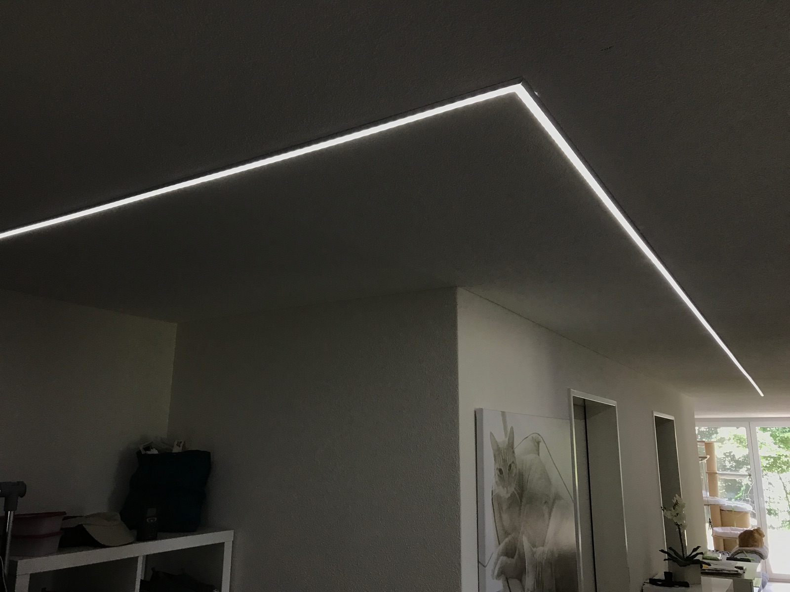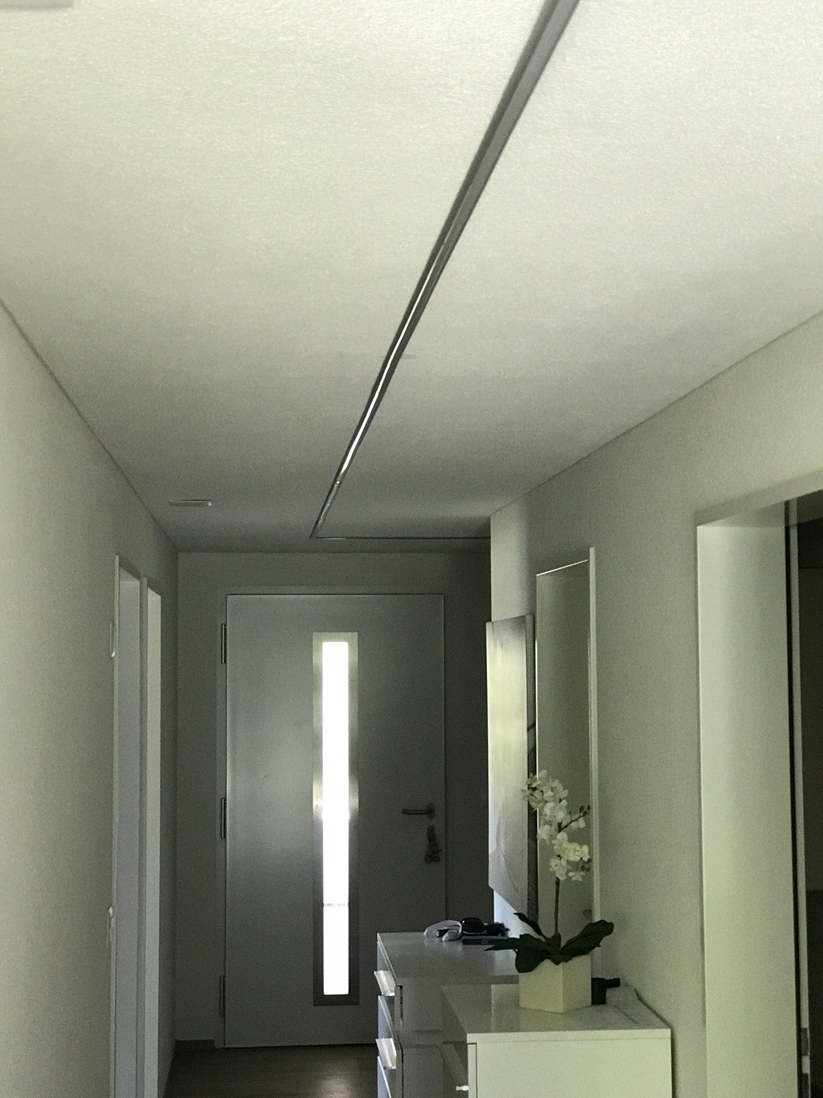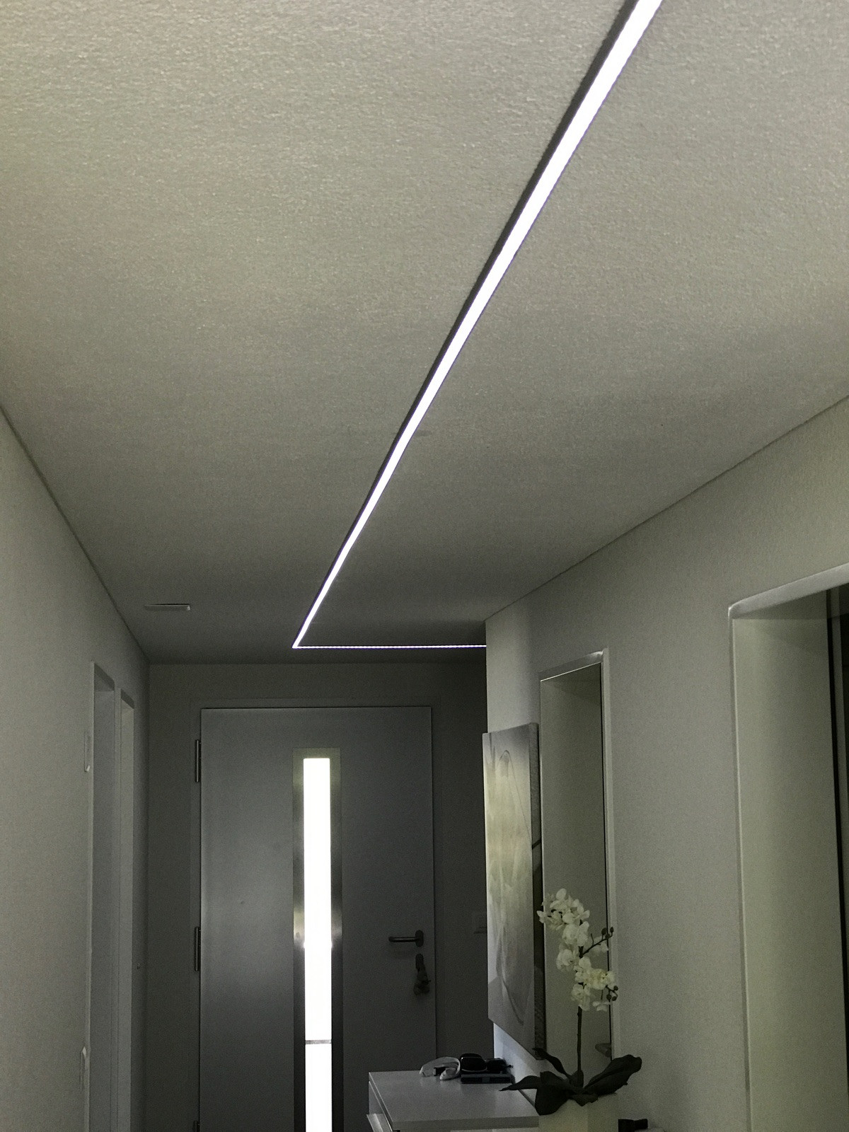 mit Milchglas-Diffusor im Flur durchgängig an die Decke montiert.