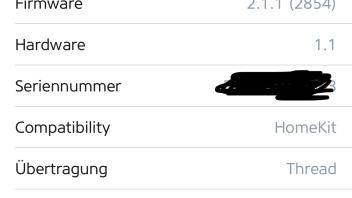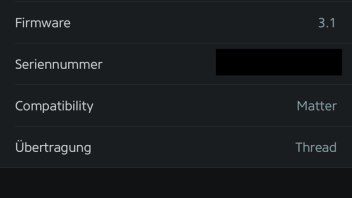 Die Gerätedetails schauen bei mir so aus. Funkt über Thread mit Matter als Protokoll: