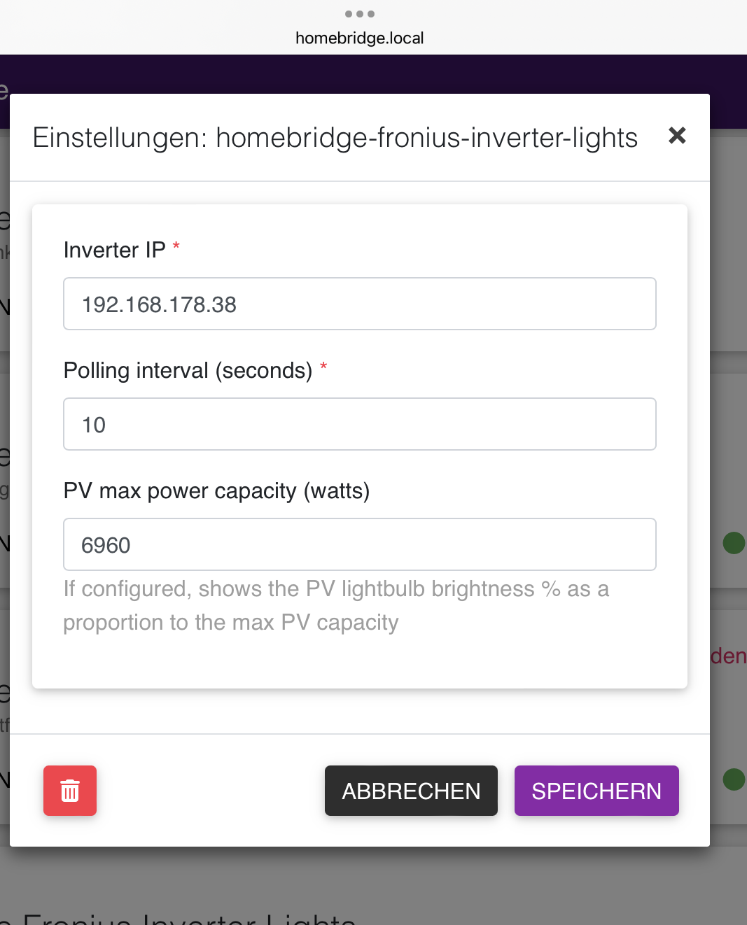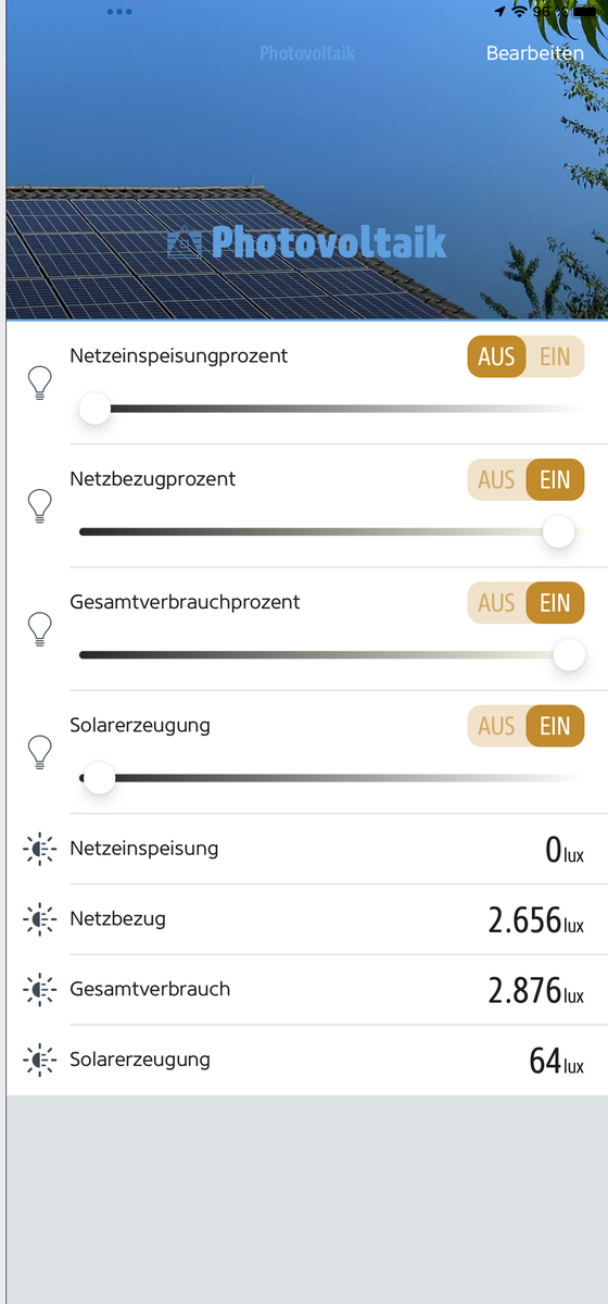 ich würde gerne die Werte der Solaranlage ins HomeKit bekommen um dort bei Überstrom bzw bei Einspeisung von Strom manchen Geräten zu sagen, das Sie eingeschaltet werden sollen. Z.B. einem Entfeuchter.