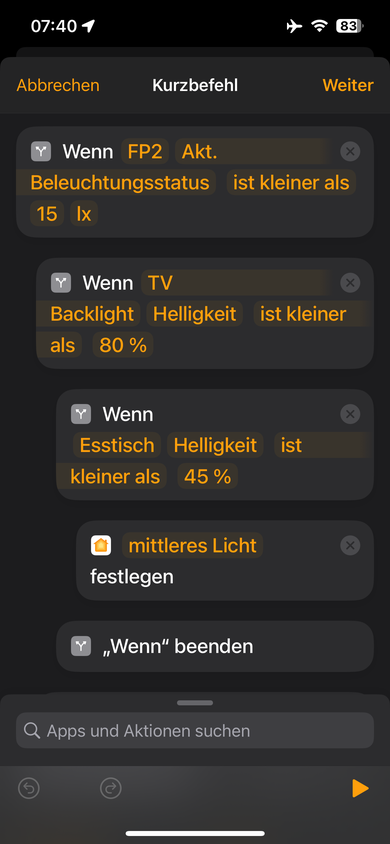 Mich nervt das Ding langsam... Ich frage in den Kurzbefehlen per Wenn-Schleifen alle erdenklichen Szenarien ab und trotzdem wird manche Automation tätig, die es durch diese Anfragen eigentlich nicht werden sollte.