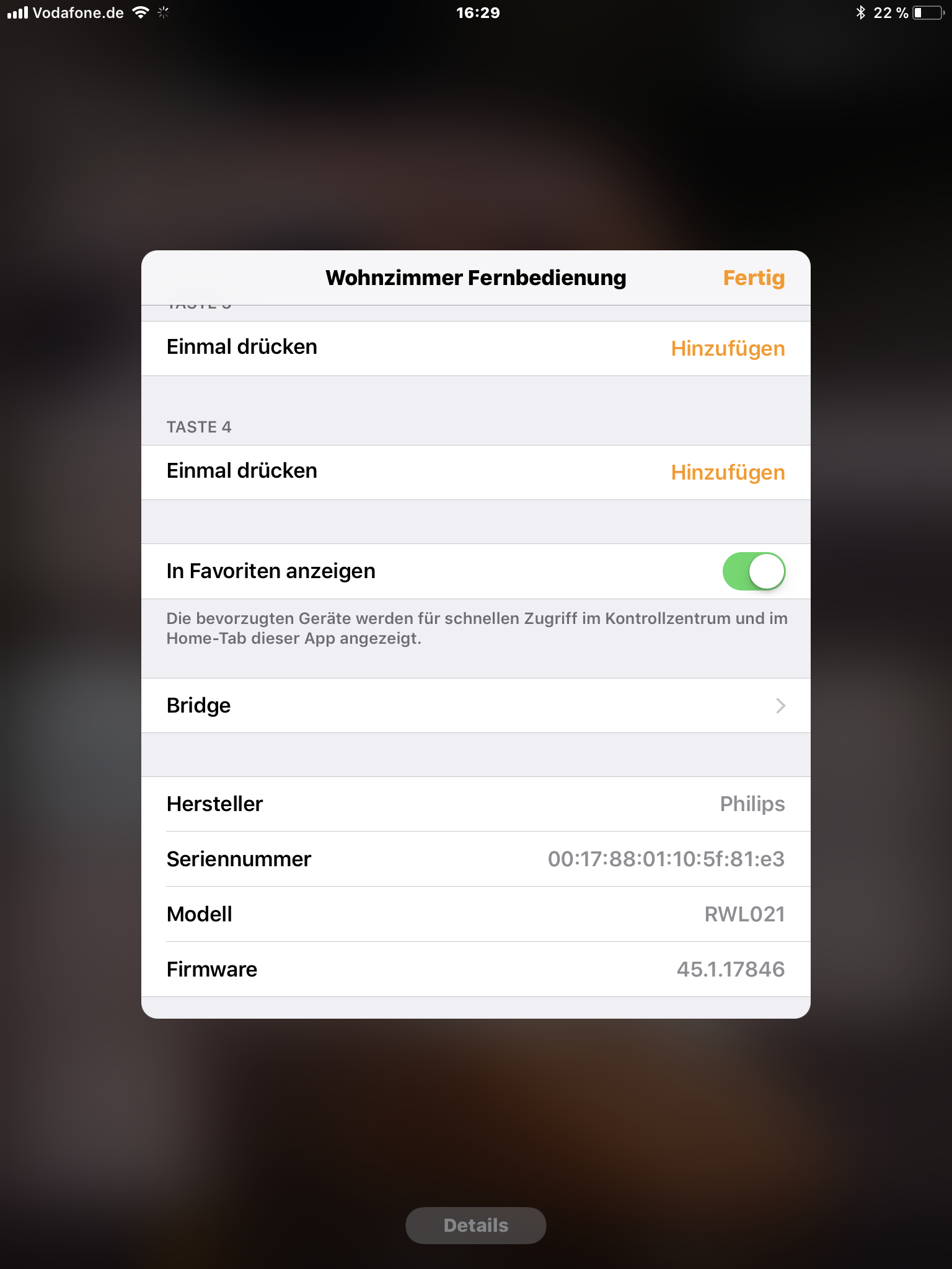 Wenn ich also in der Home-App den Dimmer anwähle, hier bei der ensprechenden Taste auf Hinzufügen klicke, dann die enstrechende Szene anklicke übernimmt die App das ganze zwar. Klicke ich dann aber auf Fertig kommt eine Fehlermeldung: Automation Hue Dimmer switch button einmal drücken konnte nicht hinzugefügt werden.