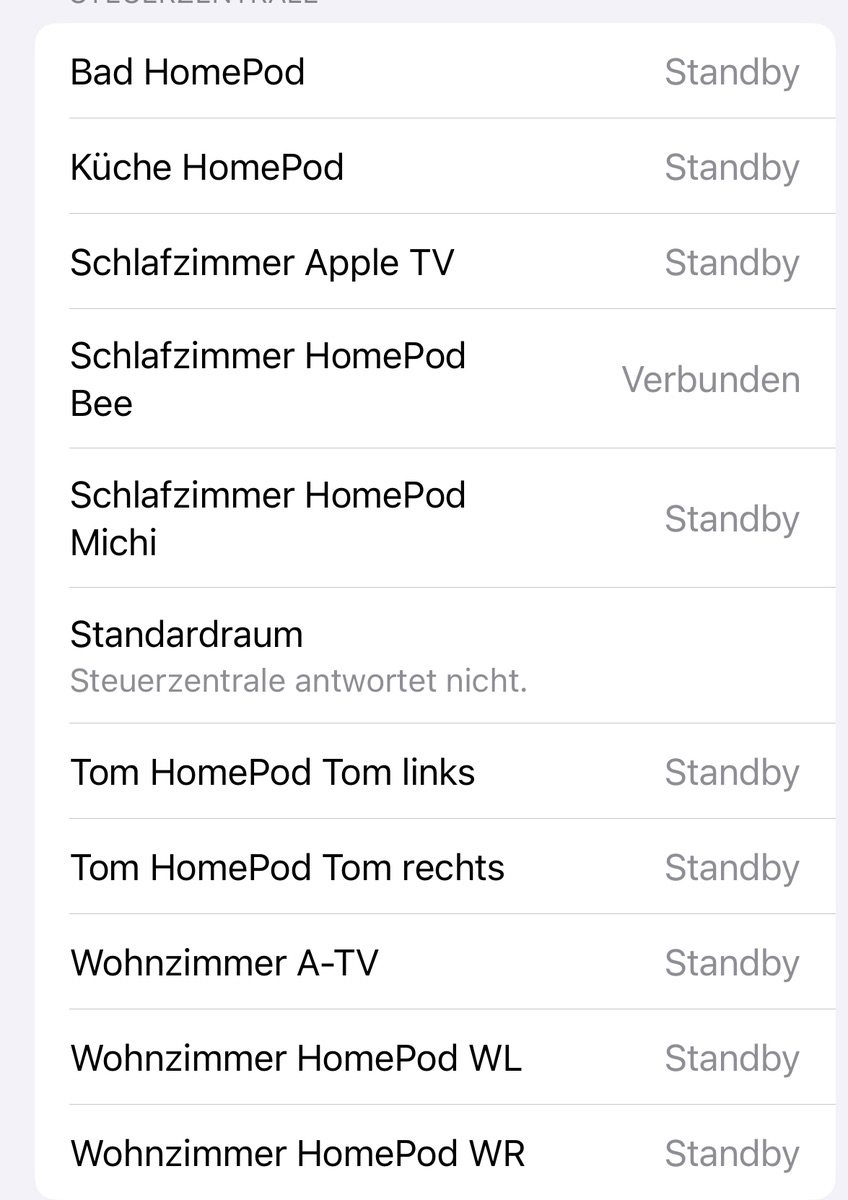 Leider wird mir in der Home App am iPhone aber noch immer angezeigt, dass es keine Verbindung mehr zu "Badezimmer" hat: