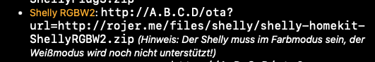 "Note: The Shelly must be in color mode to flash, flashing in white mode is not supported!".