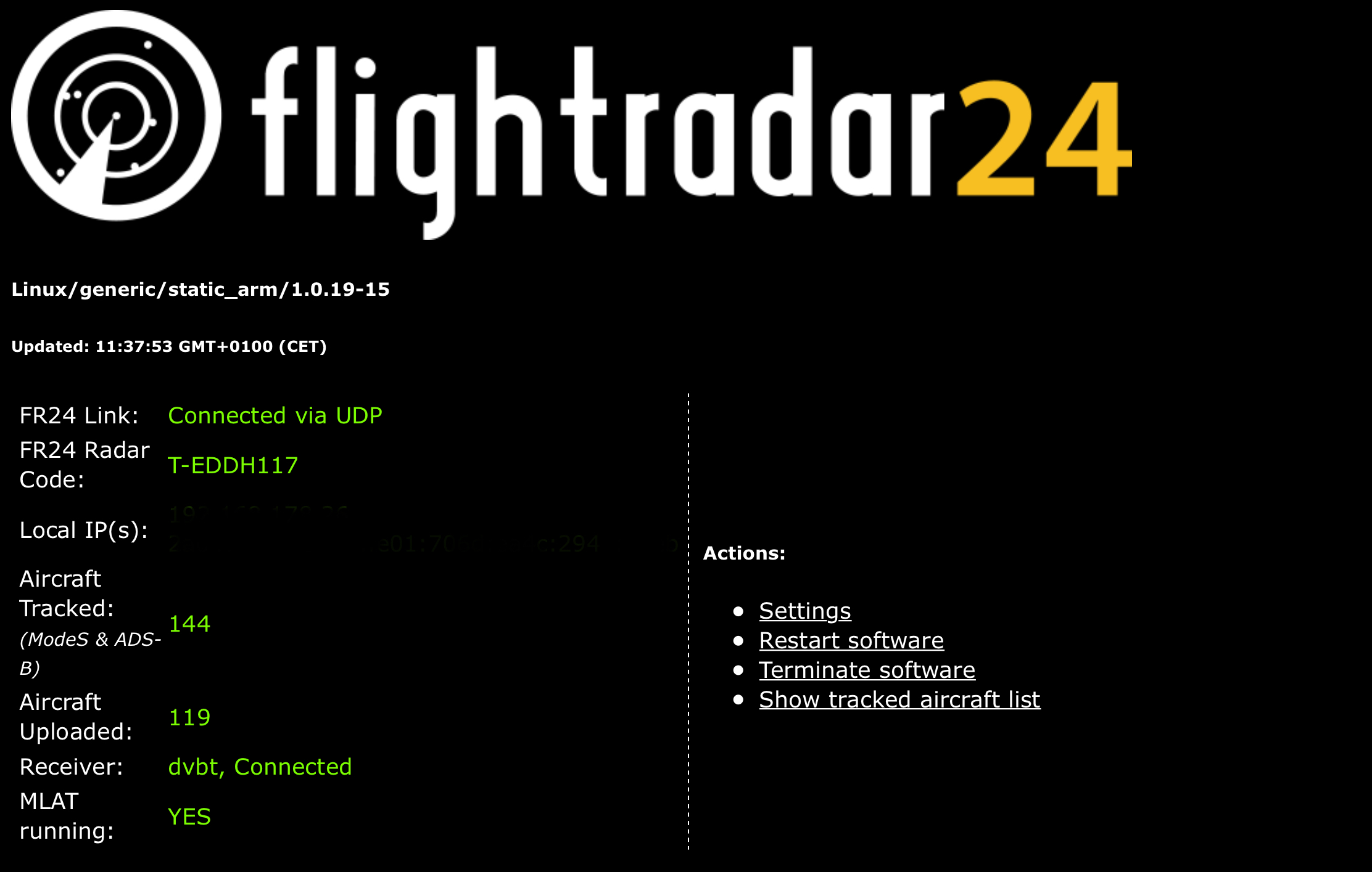 Jetzt kam mir die Idee, ob man nicht beides miteinander Verbinden könnte. Man kann über den Client nachgucken, wieviel Flugzeuge man gerade tracked und wieviel man uploaded. Wäre es möglich, diese Daten über Homebridge abzufragen?