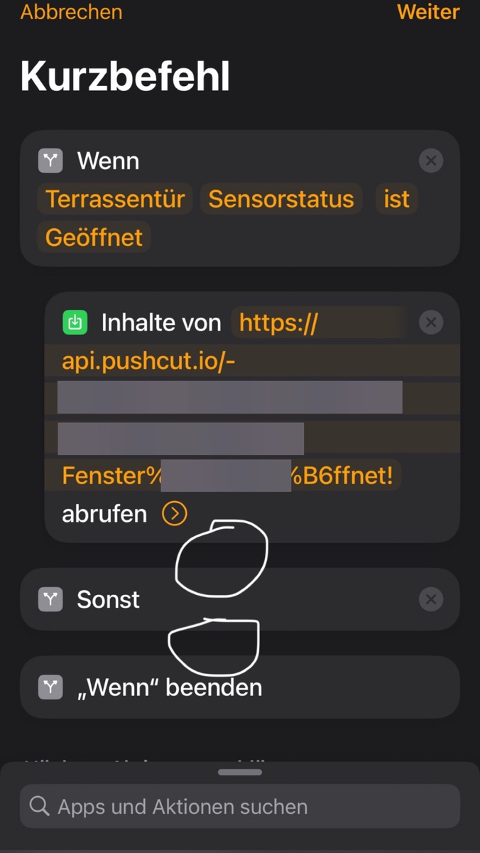 Nun stehe ich vor dem Problem, dass meine Befehle in Shortcuts keine Verbindung zueinander aufbauen und die Automationen nicht auslösen.