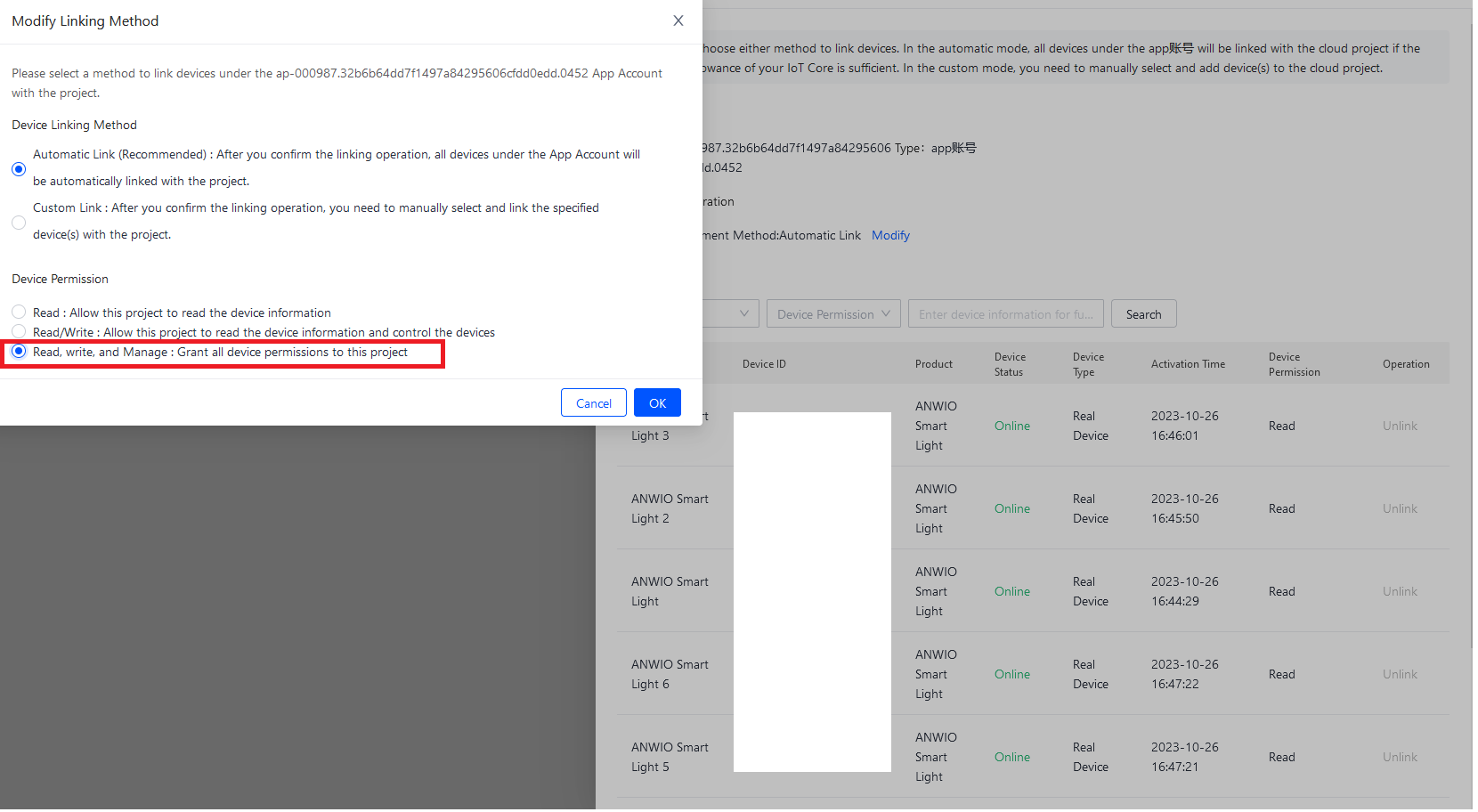 Sobald ich übrigens versuche in der Tuya Weboberfläche die Berechtigungen auf "Alles" zu ändern und auf speichern klicke wird das nicht übernommen. Die Geräte sind also andauernd auf "Read" falls relevant