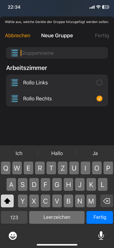 Ich betreibe in meinem Haus 7 Rollos via Shelly Update mit Apple HomeKit (Basis ist mein Apple TV). Alles funktioniert blendend in der Einzelsteuerung und Automationen, aber ich hätte gern wie in der Shelly App damals die Möglichkeit einzelne Rollos zu einer Gruppe hinzuzufügen, damit ich sie mit einem Befehl steuern kann (z.B. Fenster Ostseite 90% schließen).
