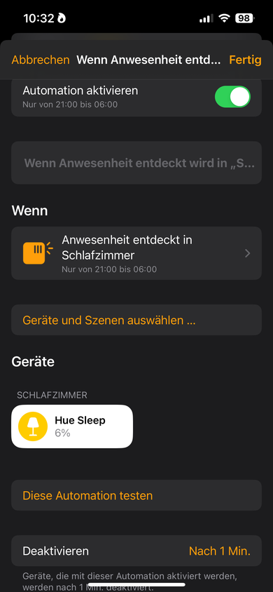 Das Problem ist das alle meine mobilen Geräte (iPhone,iPad) über Nacht in den Flugmodus gehen und sobald dies passiert funktioniert die Automation nicht mehr, das Licht wird teilweise zwar eingeschaltet aber nicht mehr aus.
