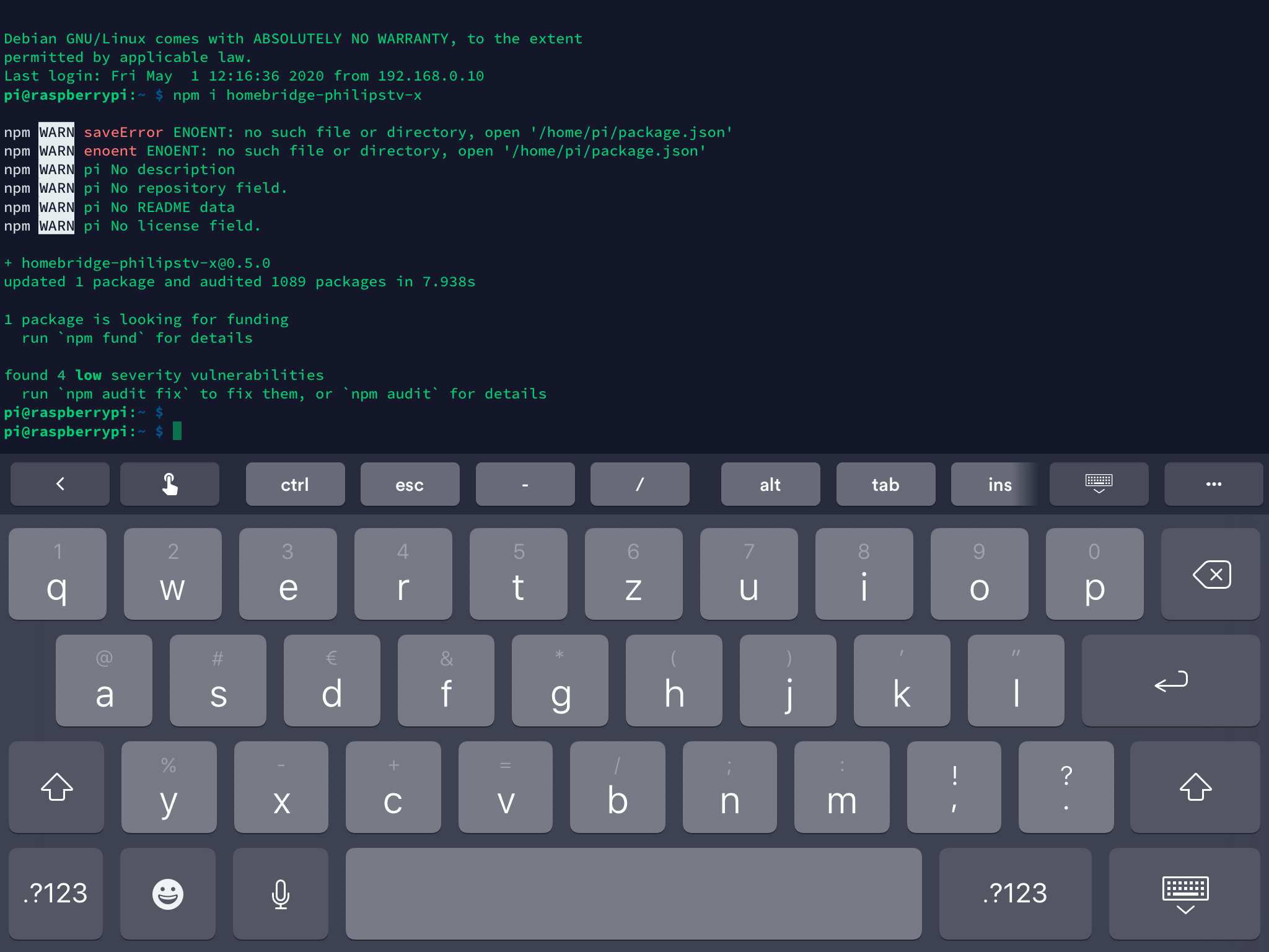 Bei mir lief das Pairing erst nach dem ich crypto und request installiert hatte.
