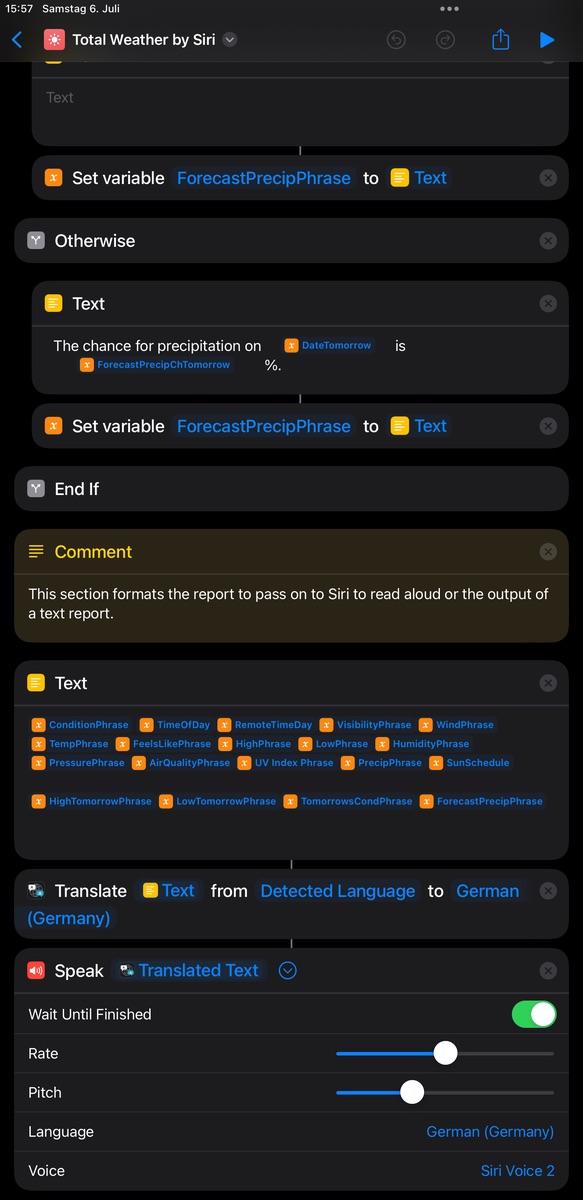 Das möchte ich allerdings nicht per Sprachbefehl selbst erledigen, sondern ich möchte die Fragen an Siri in einen Kurzbefehl packen.