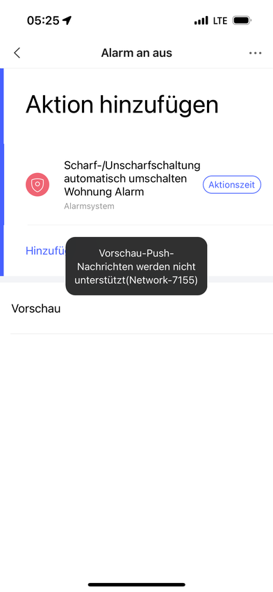 Hallo Habe ein Problem Aqara App , Kamera HUB G3 Alarmanlage Szene. Wenn ich eine Szene erstelle Alarmanlage scharf schalten, funktioniert die nur ein mal , bei zweite Mal kommt Meldung Vorschau-Push- Nachrichten werden nicht unterstützt(Network-7155) Hat jemand Lösung oder Ideen ?