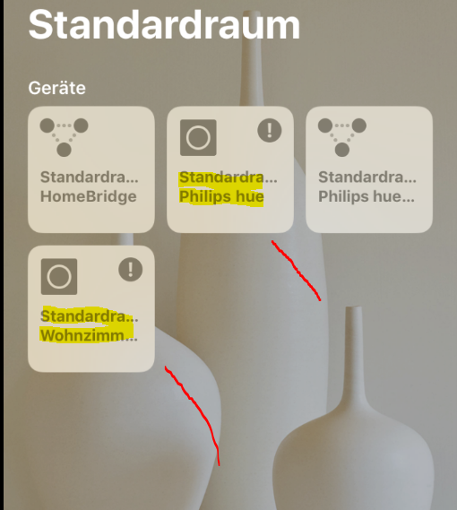 habe schon alle möglichen Konstelationen probiert, aber der Huedimmer wird immer mit Ausrufezeichen angezeigt und Homekit sagt es brauche eine Zentrale