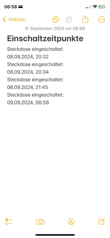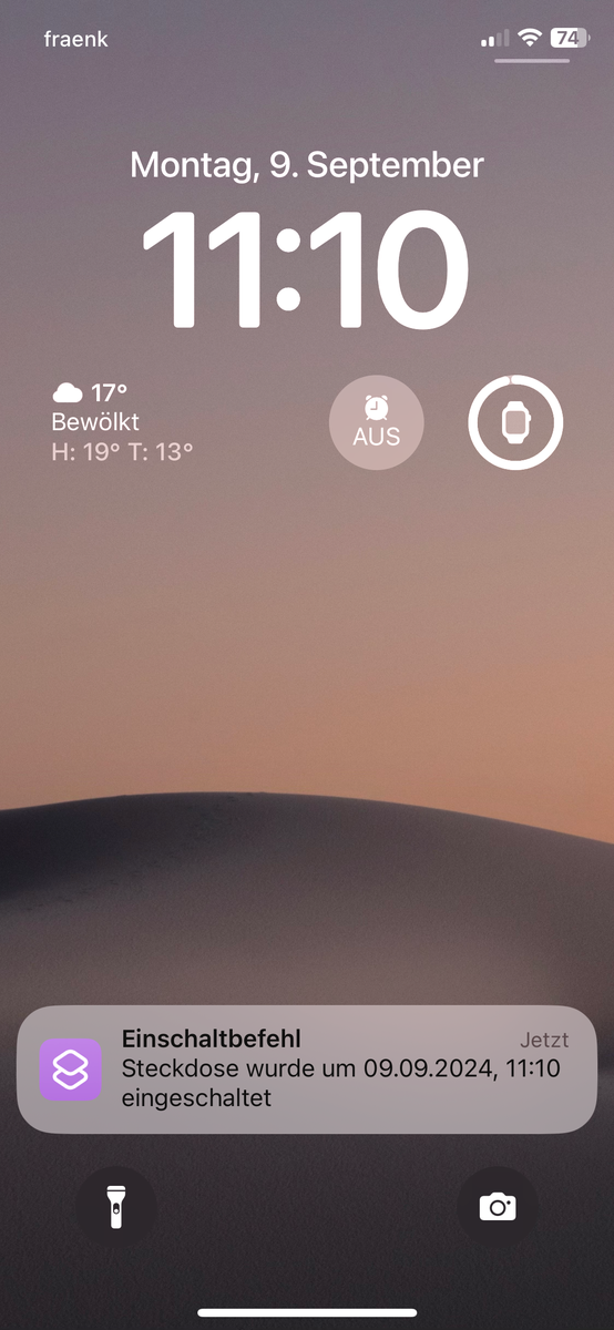 Mein Ziel ist, einen Hinweis, Push o. ä. aufs Handy, dass eine Steckdose eingeschaltet worden ist. Gleichzeitig sollte beim einschalten der Steckdose die Stoppuhr auf dem Handy gestartet werden…..