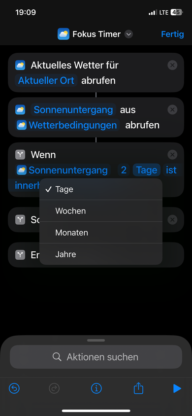 Seit iOS 18 kann ich bei Kurzbefehle „wenn“ in Verbindung mit Wetter keine Minuten mehr eingeben.