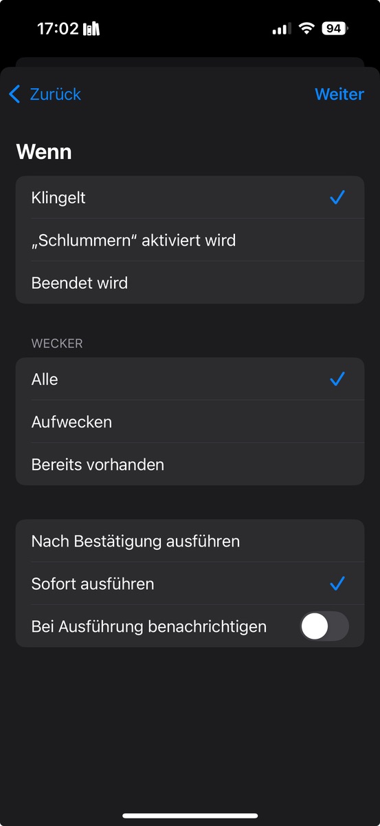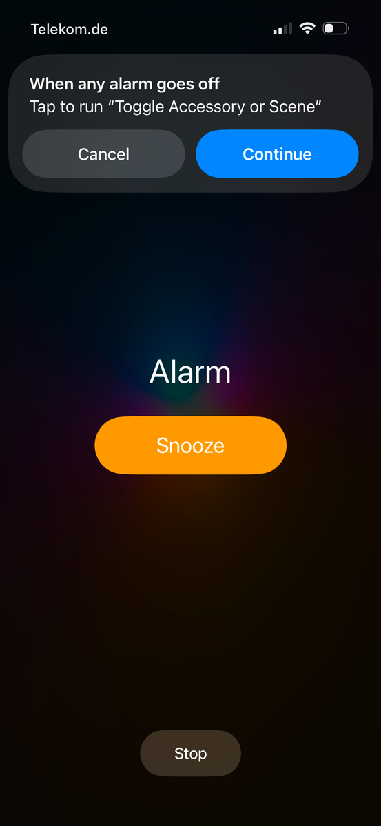 - eine Automation starte, wenn mein Wecker am iPhone klingelt