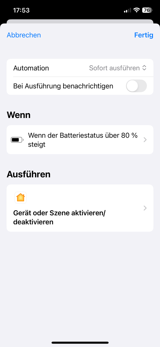 Habe in der Kurzbefehle App unter Automation folgendes angelegt.