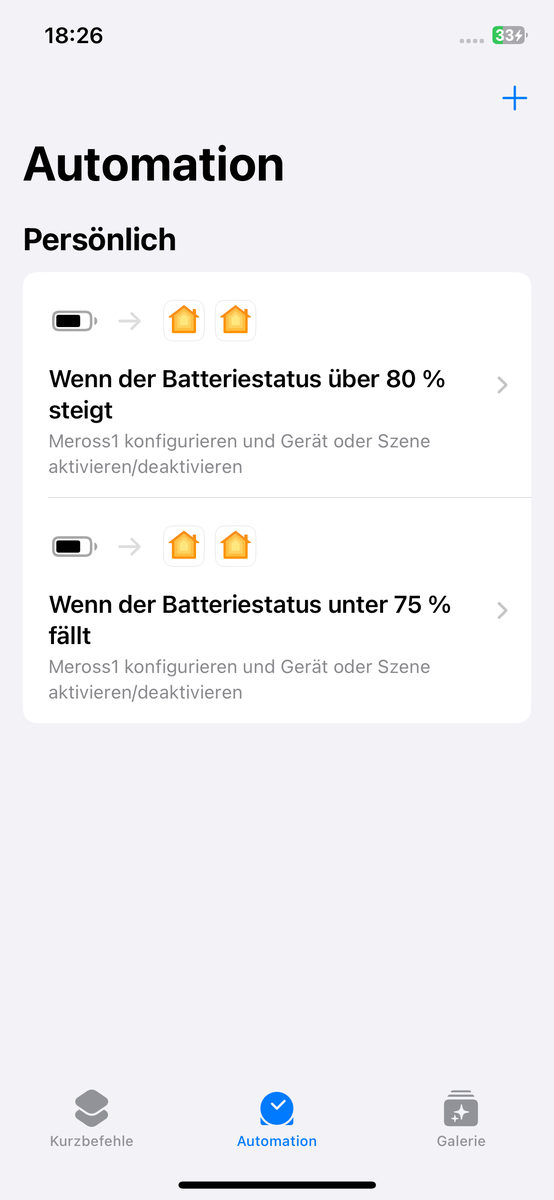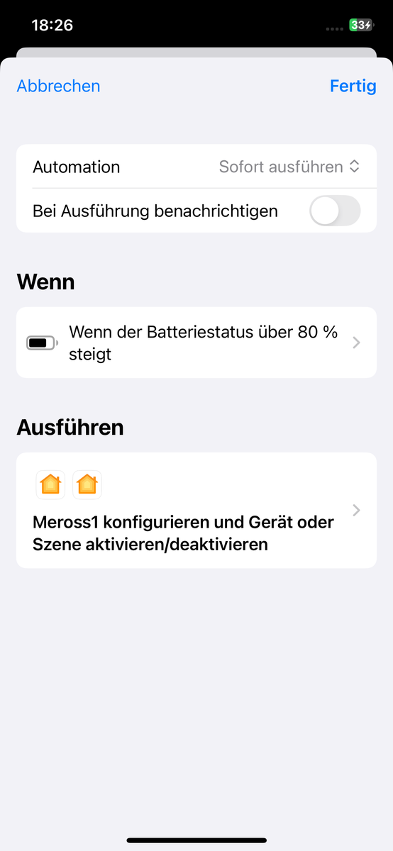 möchte in iPhone (mit iOS 18.6.2) bis 80% laden dann die Smarte Steckdose: meross Smart WiFi Plug Mini (Matter) - Model: mss315zf