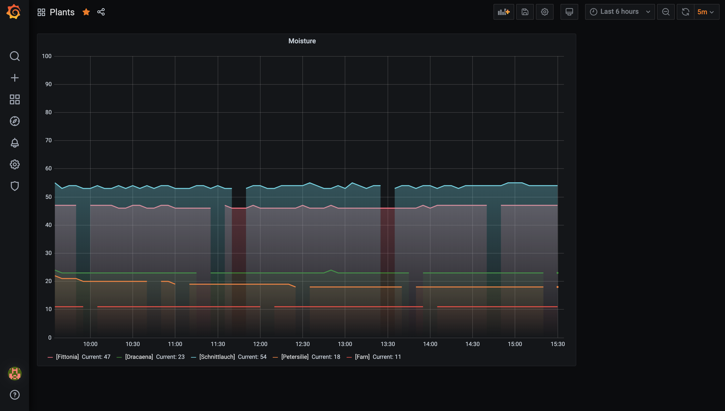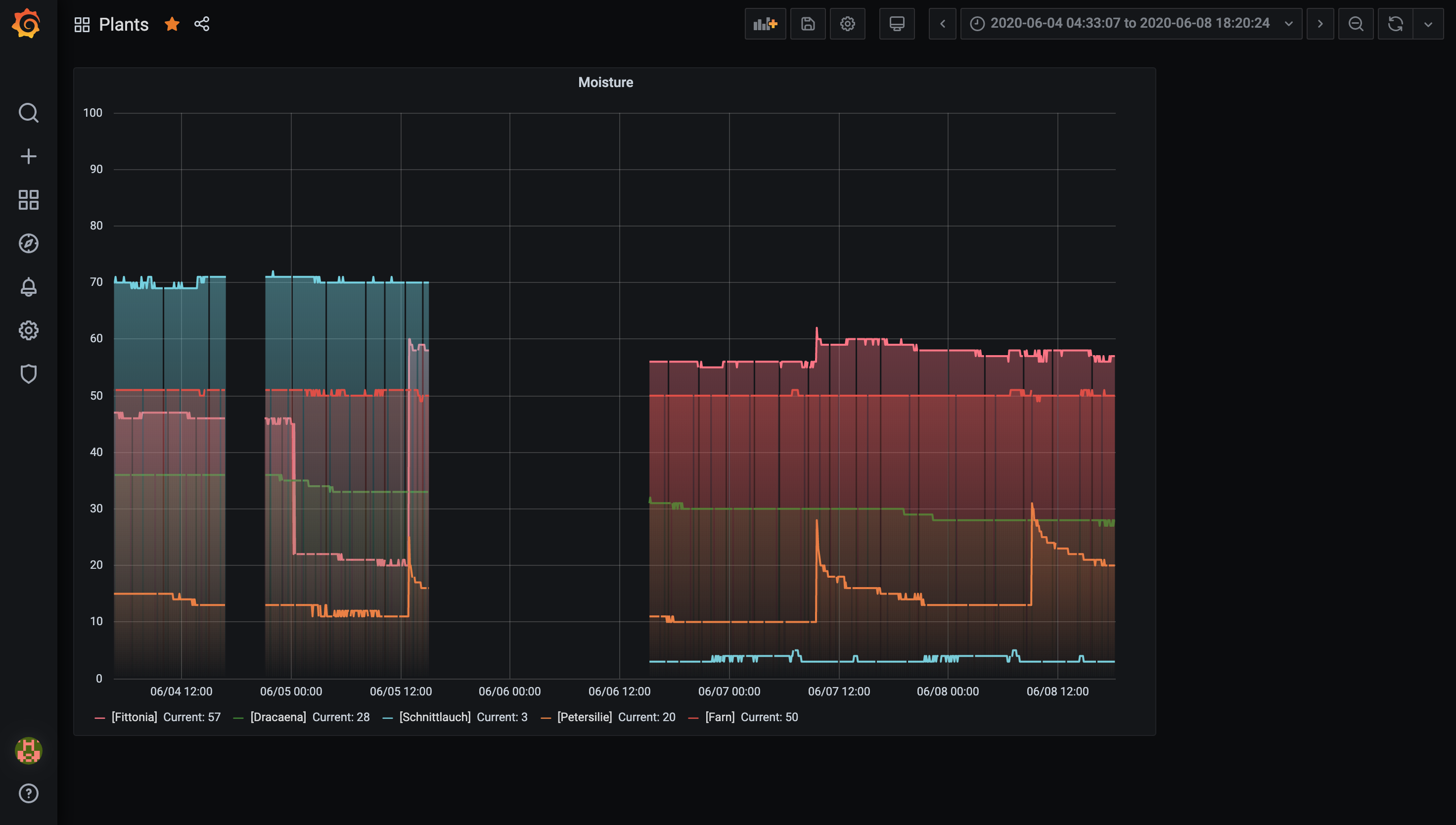 • Nein, ich speichere die Sensorendaten in eine Datenbank und lass dann die Werte visualisieren. Das sieht dann bei mir so aus: