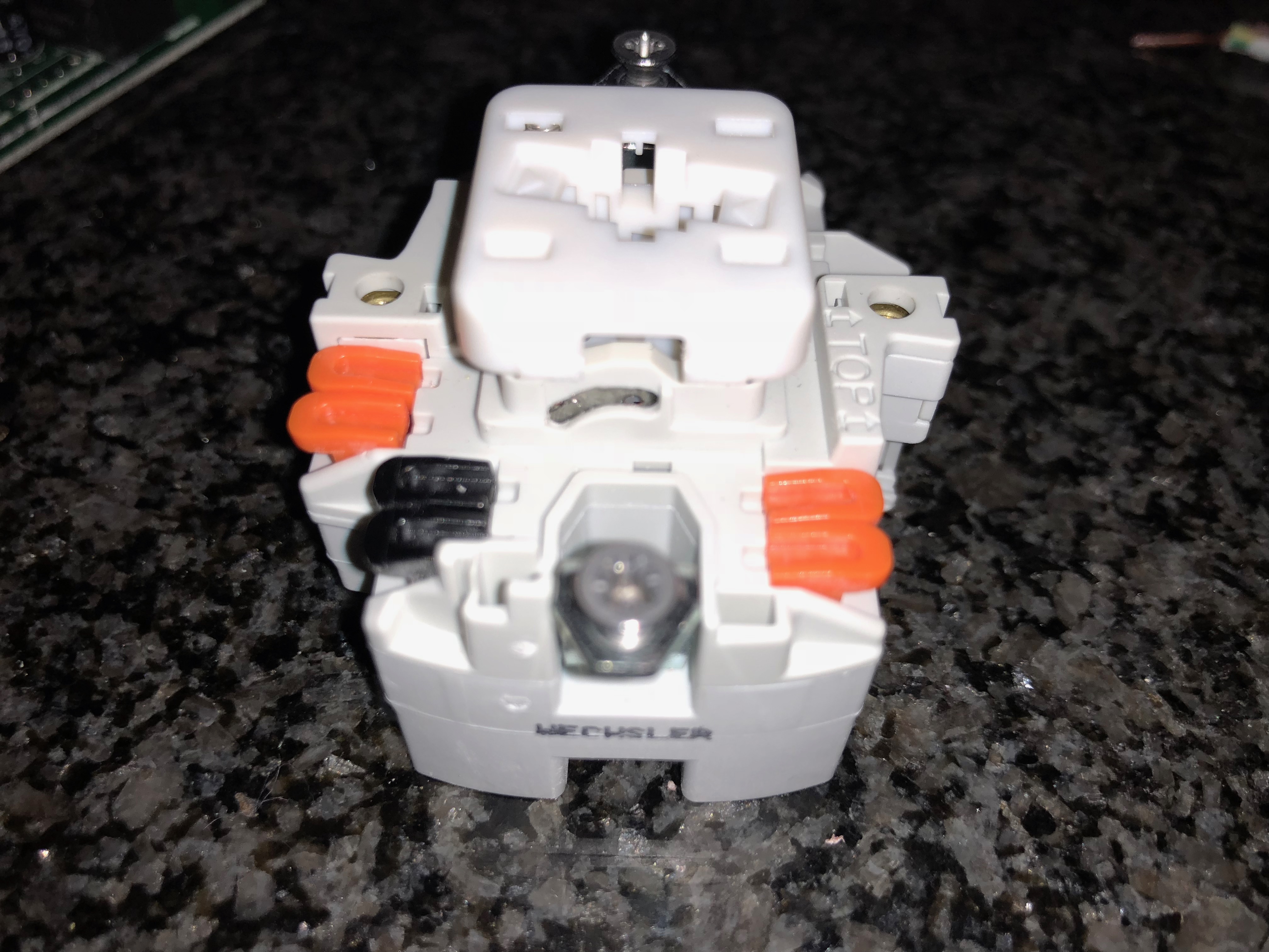 4. (CH) Feller Wandschalter von Schalter in Taster umstellen, Metallstück im Schlitz nach unten Klicken
