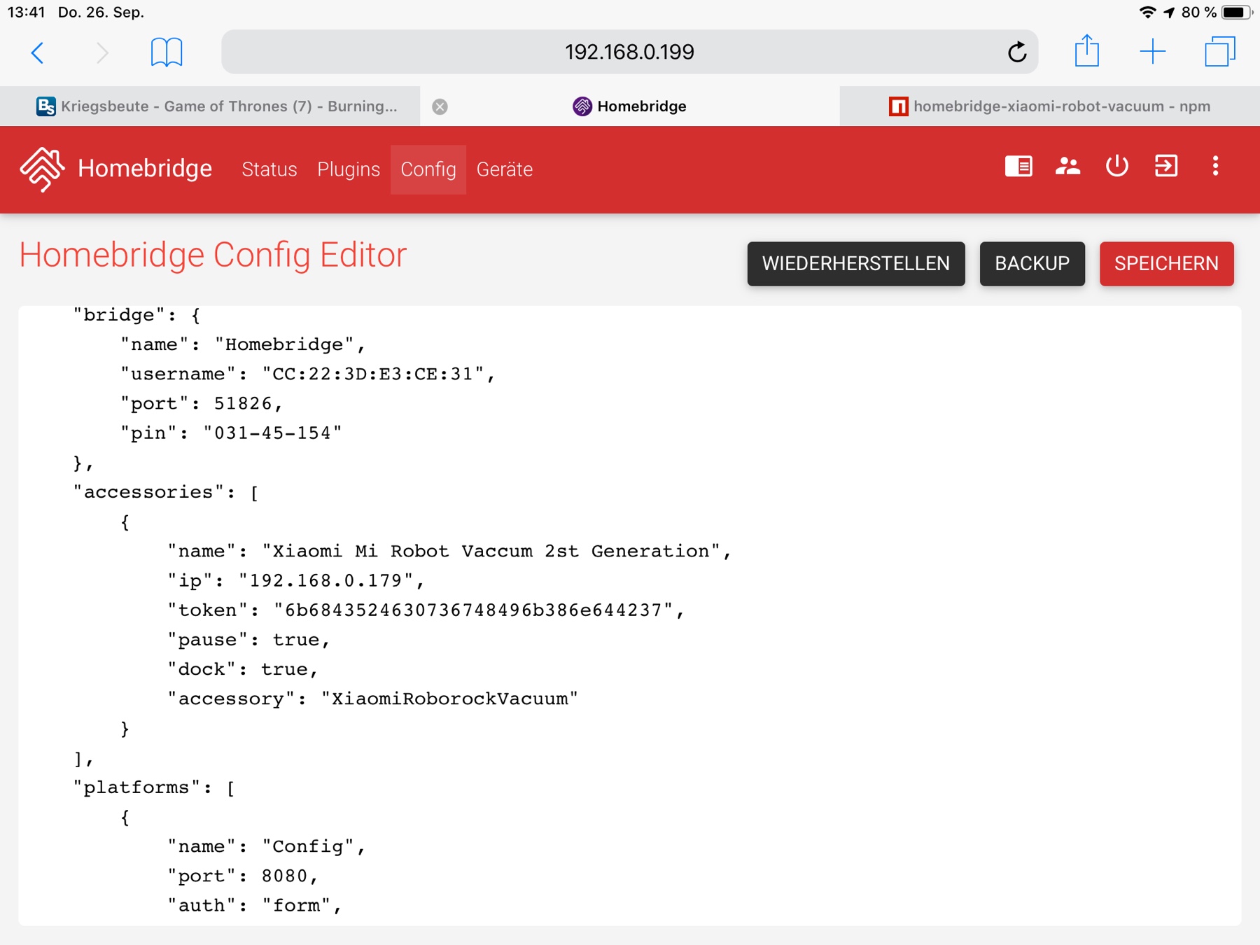 Kann ich das über das Homebridge Web Interface eingeben oder wie mach ich das?