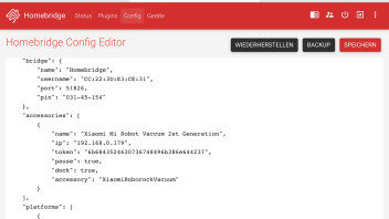 Edit: Habe mich mal Remote auf den Pi geschaltet und sehe die Kachel auch innerhalb der config-ui Oberfläche. Wie ich vermutete, unterstützt die Apple Home App noch keinen Batteriestand. Mit einer anderen HomeKit App (z.B. Eve) siehst du aber sogar den Batteriezustand des Roborock, daher die vierte und letzte Kachel.