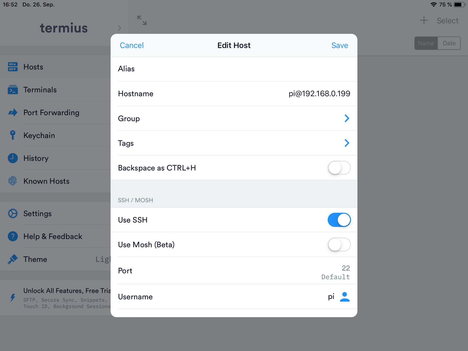 Okay habe es geschafft über Termius zuzugreifen ? Danke
