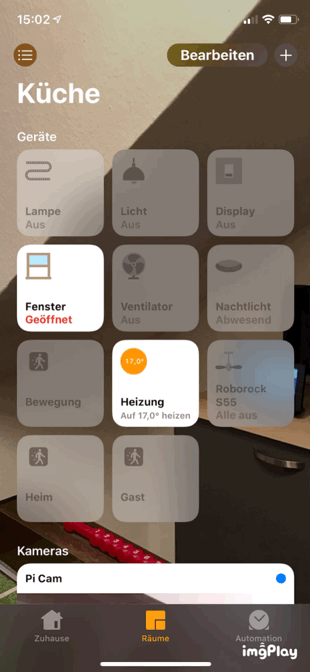 Alles anzeigenIn HomeKit erscheint die Roborock-Kachel nun mit drei enthaltenen Geräten.