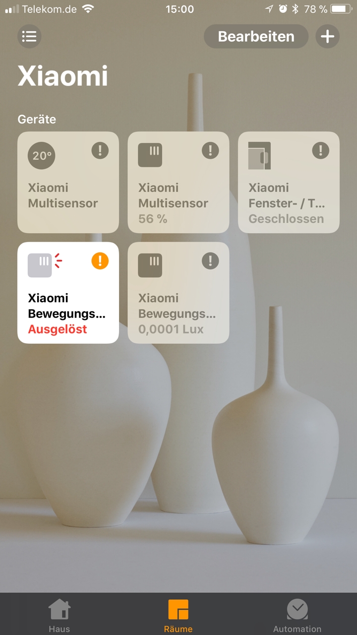 Nun flink die Phoscon App geöffnet und die Buttons an den Devices gedrückt.